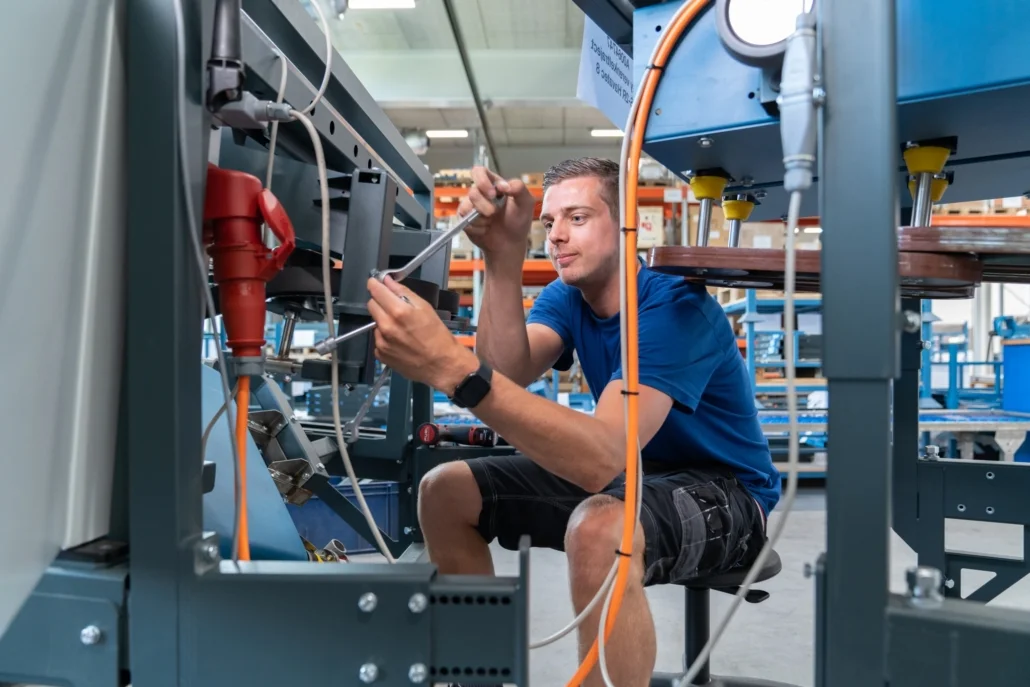 De werkzaamheden worden uitgevoerd in onze bedrijfshal van 4.000 m2. Op basis van tekeningen en werkinstructies verzorgt de afdeling de complete montage van onze machines. Het team logistiek zorgt ervoor dat iedereen de juiste spullen heeft. De teams worden ondersteunt door de medewerkers van het bedrijfsburo.